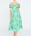 Breezy fil coupé blooms meet flirty charm in this off-shoulder A-line dress, finished with a softly draped bodice and floaty skirt. A fresh pick for showers, brunches, and sunny-day RSVPs.