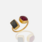 Elevate your style with the Aria Cocktail Ring, an open-band design where labradorite and ruby shimm..