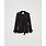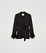 Viscose satin blazer with cuffs finished with removable torchon lace and tonal feathers. Pointy lape..