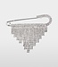 This brooch in the shape of a pennant swings playfully with every movement. Its sparkling rhinestones catch every ray of light in a sophisticated way. This accessory is fastened with an oversized safety pin. Read more..
