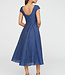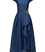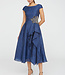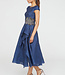 A cloud jacquard midi dress with a boat neck, high-low skirt, and shimmering beaded appliqué at the waist, blending rich texture with airy lightness. Read more..