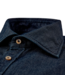 This denim blue shirt has a slim and comfortable fit, detailed with beige buttons and a slightly cur..