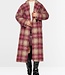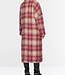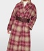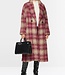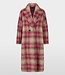Long coat with an elegant, flowing check pattern in burgundy red and beige, accented with subtle pink. Its lapel collar and two buttons give it a classic elegance. Read more..