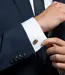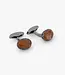 These limited edition cufflinks feature cabochons of rutilated quartz in bronze tones. They have been set in a uniquely crafted bowl case with rectangular holes cut out that allows light to pass through and show the inner beauty of each stone. Each part is finished with black rhodium plated sterling silver with an elegant circular setting.
