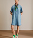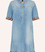 A denim dress by Marc Cain in light blue denim. A button-through closure runs from the neckline to the waist. The short sleeves have a turned-up cuff featuring a leopard print. The hemline is finished with a printed trim and a delicately frayed edge Read more..