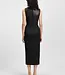 Mixing virgin-wool twill with soft leather, this sleeveless BOSS Womenswear dress cuts an elegant si..