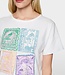 Loose-fit cotton shirt with a round neckline and short sleeves. Decorative front prints are enhanced..