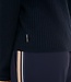 Knit sweater made from a luxurious wool blend with viscose and cashmere. The garment has a fitted shape and a round neckline. The central design element is the mix of vertical textures in varying widths. Read more..