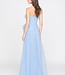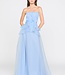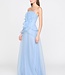 Pebbled organza gown in serenity blue with layered draping that sculpts a soft floral effect across the bodice. Luminous and elegant, it is a striking choice for black-tie evenings, galas and formal celebrations. Read more..