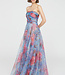 This organza strapless A-line gown features a dynamic draped bodice and vibrant ball skirt in bold, contrasting hues for unforgettable occasions. Read more..