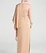 Embrace timeless elegance with a modern edge in the Rhiannon Gown, featuring an asymmetric drape crafted from luminous satin in a delicate tan beige hue and enhanced with a sleek metal waist belt. Read more..