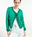 A ladylike top layer, the draped front jacket features patch pockets and matching fringed trim. We l..