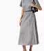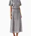 Crew-neck long dress with raglan short sleeves, made of ottoman whose weave generates a succession of stripes that become sophisticated embossed ribs. The jacquard creates a distinctive two-tone texture with a pleated effect Read more..