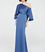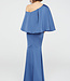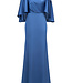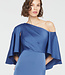 A double-faced satin fit-and-flare gown with an asymmetric neckline and draped cape sleeve, combining modern drama with classic elegance. Read more..