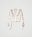 Cotton blend diamond-pattern mesh knit cardigan with floral ramage print. V-neck, long sleeves, ribbed trims, snap button fastening, loose fit. Read more..