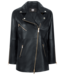 Biker jacket in lamb nappa leather with wide collar, diagonal zip and metal studs. Long, straight cut for a sleek look. Length 75.2 cm, shoulder width 44.5 cm (size 36 UK 10). Style 572010, black, 100% leather.