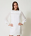 Short dress made from linen and cotton blend shuttle-woven fabric with georgette bellows pleat sleeves. Crew neck, tonal à jour stitch embroidery details, cuffs with covered buttons, cotton muslin lining, concealed zip fastening and logo plate at the back Read more..