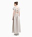 Long dress with a V neck, short sleeves and two practical side pockets, made of crisp linen with a shiny finish. Dress with a feminine design and fluid texture that your can wear effortlessly from day to night: the skirt pleats create movement Read more..