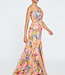 The Macie Gown is a sultry one-shoulder silhouette crafted from sheered printed tulle. Designed to hug the body with artful ruching and a thigh-high slit. Wrapped in vivid florals, it’s a romantic vision—bold, beguiling, and worthy of midsummer dreams. Read more..