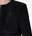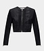 A sleek cropped leather jacket with embossed detailing to elevate your look.