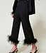 Viscose satin trousers, torchon with tonal marabou feathers applied by hand at the hem. Side zip fastening, Oval T logo plate at the back, straight fit with slight flare at the bottom. Perfect for parties and formal occasions Read more..