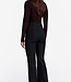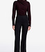 Mid-rise with a slight flare, this stretch full-length pant silhouette features a flat front (no waistband), stitched crease and side zip closure.It is designed to be fitted through the waist and hips and is an excellent black pant to have in your wardrob Read more..
