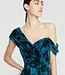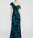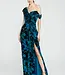 Embrace dramatic elegance with this burnout velvet fit and flare gown, featuring an asymmetric off-shoulder bodice drape and sophisticated boning stitching that highlights the corsetry in a refined manner. Read more..