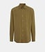 Luxury leisure shirt crafted from impeccably soft mulberry silk in a refined olive green hue. Finish..