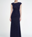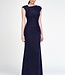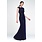 Crafted from a new knit fabric infused with navy lurex and topped with navy beads, this asymmetric fit and flare gown redefines modern elegance. Read more..