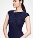 Crafted from a new knit fabric infused with navy lurex and topped with navy beads, this asymmetric f..