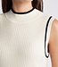 Cashmere-kissed virgin-wool yarns soften this sleeveless rib sweater featuring contrast trim and fin..