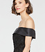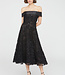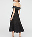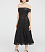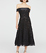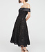 A floral lace off-shoulder cocktail dress with a structured Mikado neckline and intricate textured details for romantic charm. Read more..