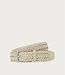 Braided split leather belt, enhanced by a rectangular buckle with a satinised silver finish. The wool lining adds a bimaterial appeal and keeps it comfortable to wear. An accessory with a refined colour scheme. Read more..