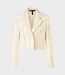 This short blazer has a 3D texture thanks to its fringed details. It comes with a wide collar and button fastening. Darts emphasize the figure-hugging cut. The material blend with cotton, viscose and elastane increases comfort.