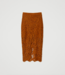 Mid-length rébrodé macramé lace skirt, side zip closure, scalloped hem, lined.