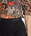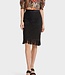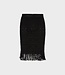 Fitted skirt made from semi-sheer crochet lace - lined. The style has an all-over rhomboid design and a border at hip height. The hem is adorned with fringes in bouclé yarn. The waist is finished with an elasticated waistband. The skirt can be closed with a zip in the middle of the back.