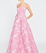 The Soleil Gown is a sculptural standout, featuring a dramatic full skirt and a flattering basque waist that enhances the silhouette. With its bold floral jacquard, square neckline, and structured straps, it balances drama with artful craftsmanship. Read more..