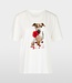 T-shirt made from 100% cotton. The garment has a loose fit and an open hem. The round neckline is wide, and the sleeves are short. The front is adorned with a photo print of a dog motif. Parts of the print are embellished with rhinestones and sequins. Read more..