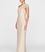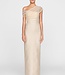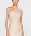 Metallic jacquard gown with a softly luminous finish and elegant draped shawl detail across the shoulder. The streamlined column silhouette creates a refined look, ideal for second wedding looks or intimate evening celebrations. Read more..
