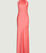 La robe Emie, sculptée avec une coupe en biais dans un satin lustré, séduit par son col licou et son drapé élégamment noué. Cette silhouette ajustée et évasée tombe en cascade jusqu'au sol, incarnant l'élégance raffinée avec une touche d'allure, parfaite pour une soirée où chaque détail compte.