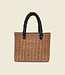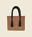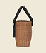 Sac fourre-tout en rotin tressé avec poignées en cuir d'agneau froncées