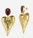 Conçues pour les femmes qui embrassent la mode de luxe avec un cœur conscient, ces grandes boucles d'oreilles sculpturales en or en forme de cœur sont une célébration de la passion et de l'individualité. Ces boucles d'oreilles sculpturales en forme de cœur en or sont une célébration de la passion et de l'individualité. Elles sont ornées d'un rubis semi-précieux riche et facetté et d'un cœur en or martelé.