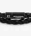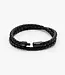 Ce bracelet polyvalent est fabriqué à partir de rayonne noire tressée et de cuir, créant ainsi u..