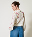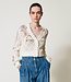 Cardigan en maille losange en coton mélangé avec imprimé floral ramage. Col en V, manches longues..