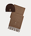 Coffret en laine comprenant un bonnet en maille torsadée et une écharpe à franges, chacun brodé ..