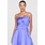 Robe longue en mikado sans bretelles dans une teinte pervenche lumineuse. Corsage drapé asymétriqu..