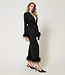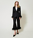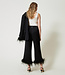 Pantalon en satin de viscose, torchon avec plumes de marabout ton sur ton appliquées à la main à l'ourlet. Fermeture zippée sur le côté, plaque ovale du logo T au dos, coupe droite avec léger évasement au bas. Parfait pour les fêtes et les occasions Lire plus..