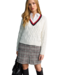 Un style collège revisité. Ce pull tricoté à col en V associe un motif torsadé classique à des..