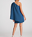 Mini robe épaule en crêpe stretch avec manches en cascade.