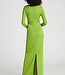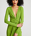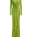 Robe à manches longues en jersey mat avec drapé torsadé à la taille.